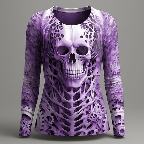 T Shirt da donna Grafica Teschio Scheletro Vintage Moda Elegante Manica Lunga Collo Rotondo Regular Tops Stampa Quotidiana Weekend Rosso Viola Verde Grigio Estate Primavera Autunno