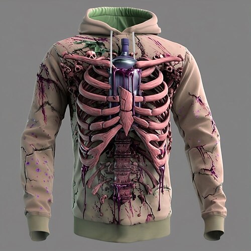 Per uomo 3D Scheletro Felpa con Cappuccio Felpa Punk Esagerato Gotico Casual Manica Lunga Girocollo Con Cappuccio Club Abbigliamento casual alla moda Rosso Blu Verde Coulisse Autunno Inverno