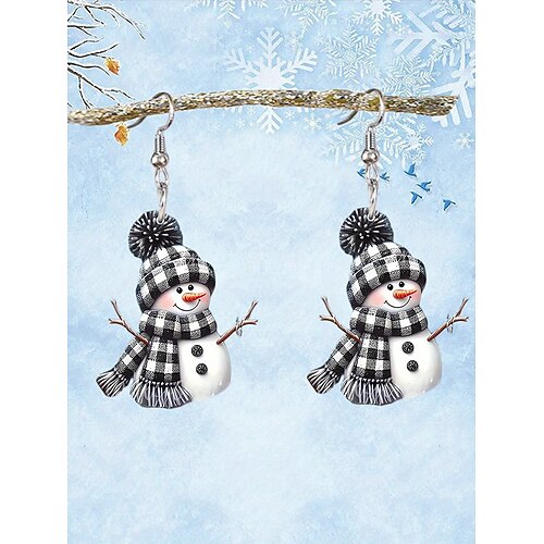 orecchini da donna a forma di pupazzo di neve in acrilico natalizio: design festoso con sciarpa e cappello, perfetti per le feste e per l'abbigliamento invernale