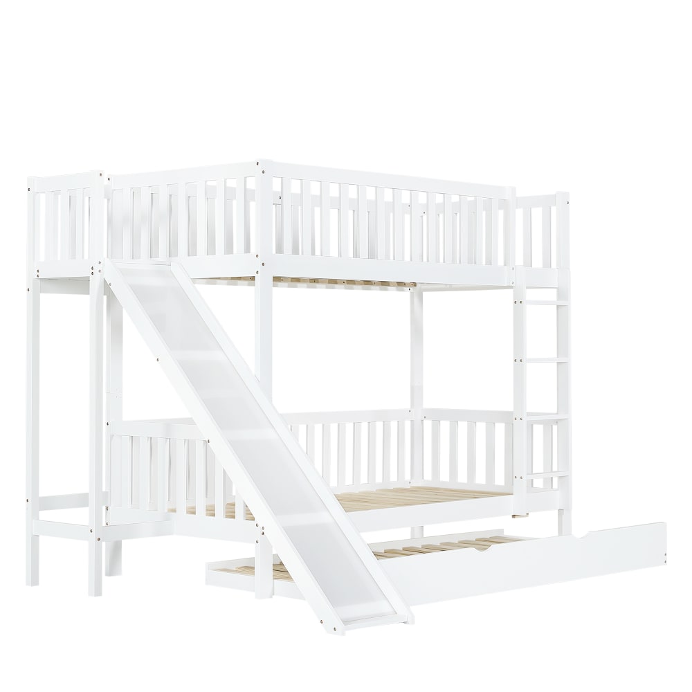 Letto a soppalco in legno bianco 90x200/190cm con scivolo