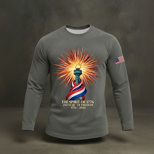 250° anniversario dell'America Per uomo Grafico Bandiera Torcia Maglietta Camicia a Maniche Lunghe Manica Lunga maglietta Stampa 3D Girocollo Camicia Moda Quotidiano Essenziale Quotidiano Vacanza