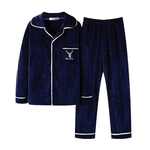 Per uomo Pigiami Abito di seta Set pigiama Pantaloncini del pigiama 1 set Liscio Di tendenza Moda Classico Interni Giornaliero Da letto Poliestere Comfort Morbido Bavero Manica lunga Pantaloncini