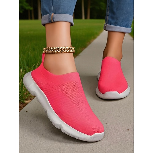 sneakers slip-on da donna in maglia rosa scarpe sportive ultraleggere per passeggiate informali, palestra, viaggi e comfort quotidiano