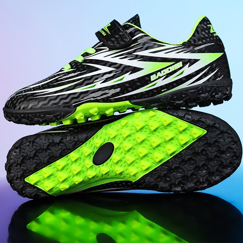 28-39 Pojkar/Barn Gummi Halkfria Kardborreband Snörning Konstgräs Fotbollsskor för Pojkar cm grön/svart