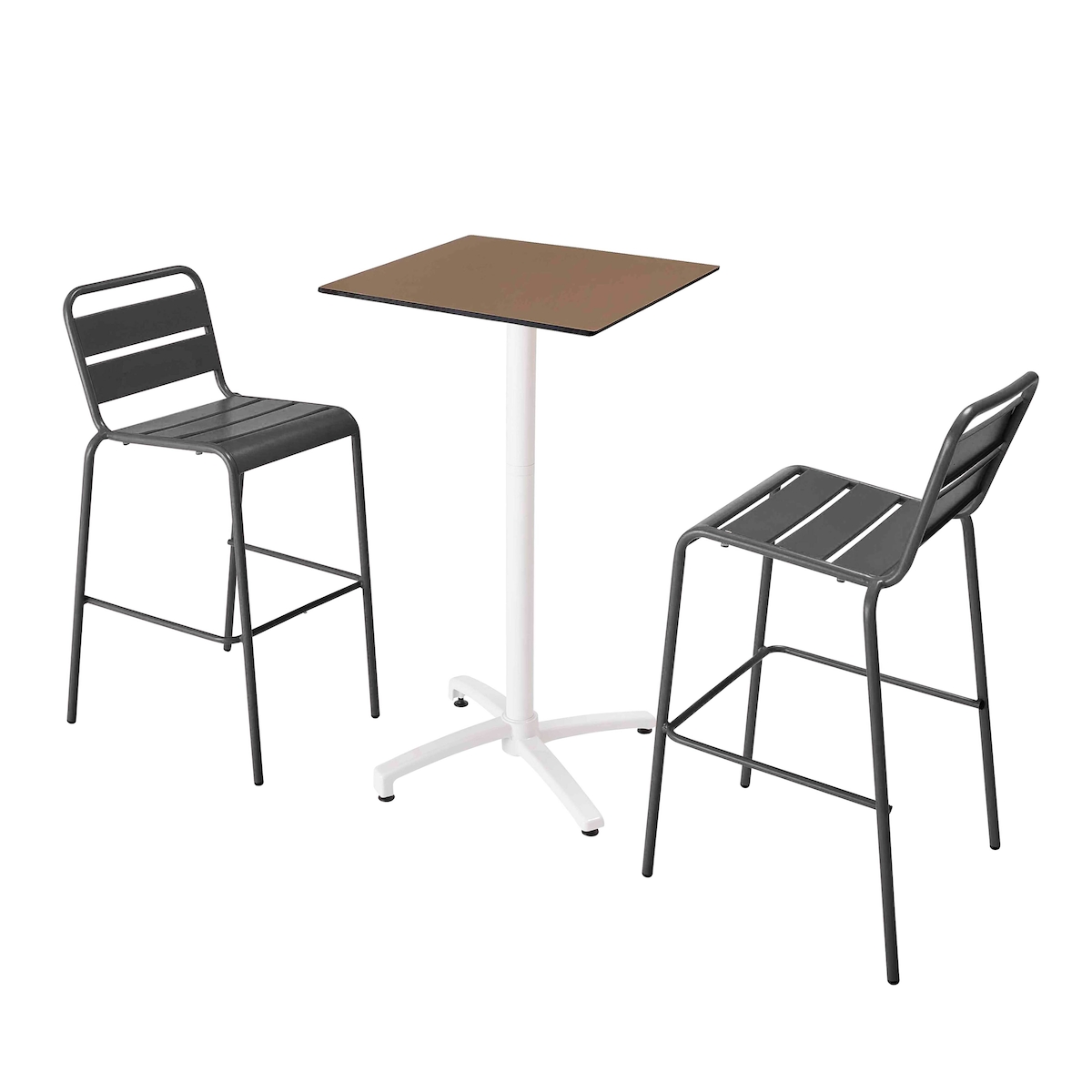 Oviala Business Set Stehtisch Laminat taupe mit 2 Hochstühlen grau