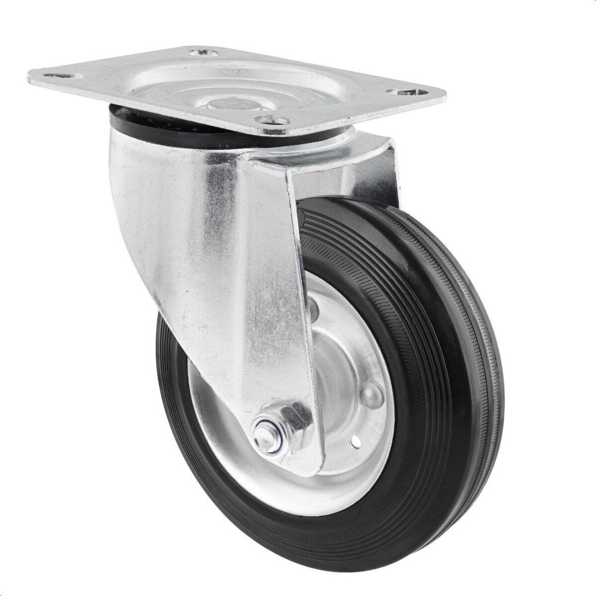 WAGNER Soft-Lenkrolle - Ø 160 mm, Stahl Felge verzinkt, Vollgummi, Anschraubplatte, Tragkraft 150 kg - 04616001