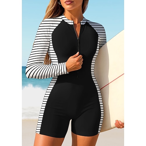 Per donna Top sottomuta Costume da surf intero Costume da bagno Geometrico A righe Color-blocking Protezione Solare UV UPF50 Ultra Leggero (UL) Manica Lunga Costume da Bagno Top sottomuta Con zip