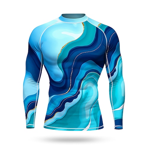 Per uomo Standard Top sottomuta Maglia da nuoto Geometrico Astratto Marmo UPF50 Protezione UV Asciugatura Rapida Manica Lunga Costume da Bagno Top sottomuta Surf Canoa Spiaggia Estate
