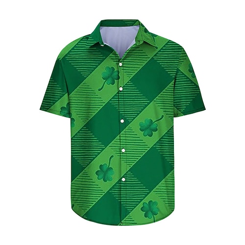 giorno di san patrizio quadrifoglio camicia casual da uomo abbigliamento quotidiano per uscire nel fine settimana autunno/autunno couverture maniche corte nero, verde s, m, l camicia in tessuto