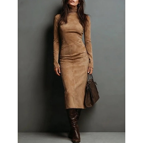 Per donna Abito Midi Tubino Vacanza Casual Boho Quotidiano Data Taglia piccola Semplice Manica Lunga Dolcevita Marrone Scuro Marrone chiaro Grigio Autunno Inverno