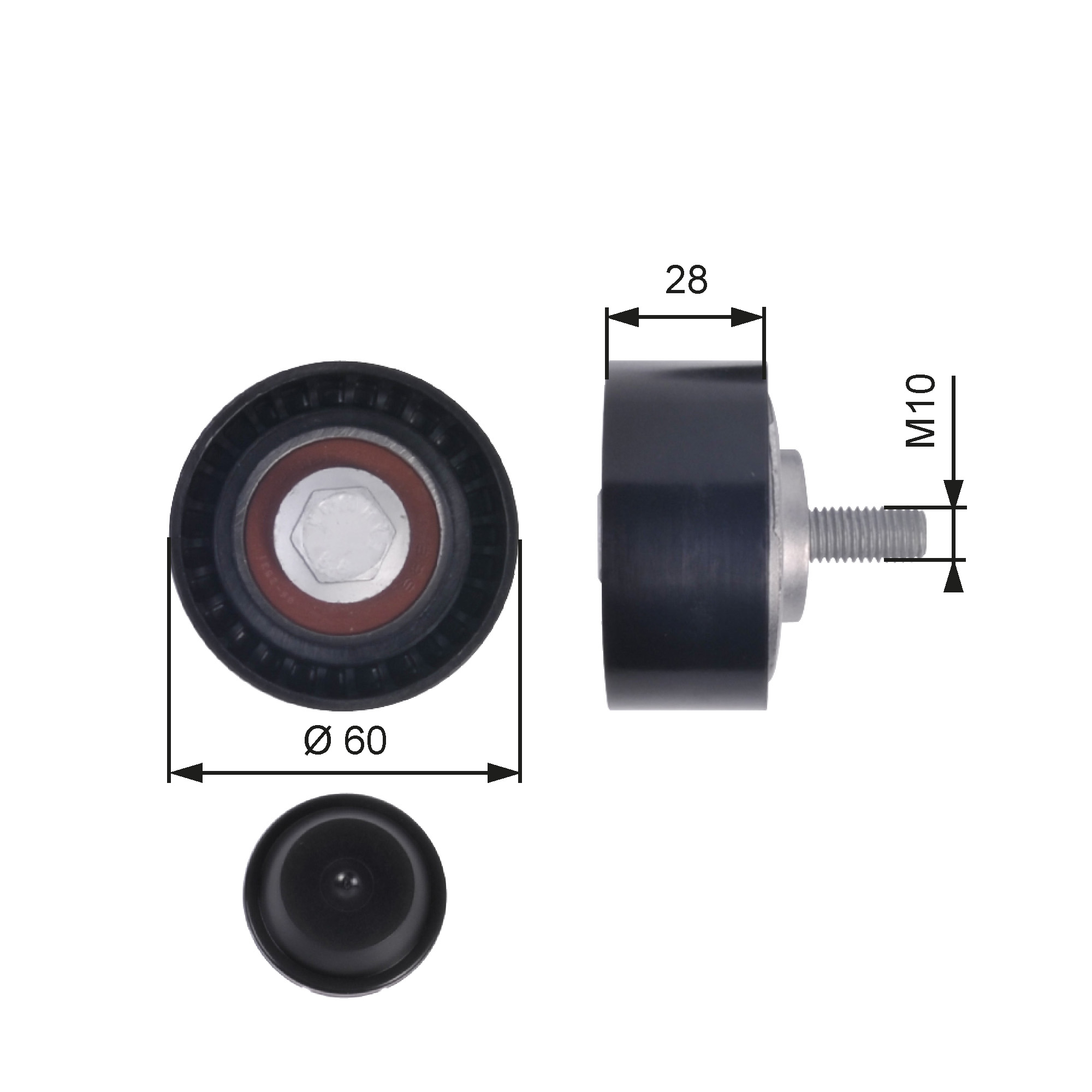 GATES Umlenk-/Führungsrolle, Keilrippenriemen DriveAlign® T36384 60mm für VW AUDI MAN PORSCHE 65.95801-0007 95510227600 022145276A