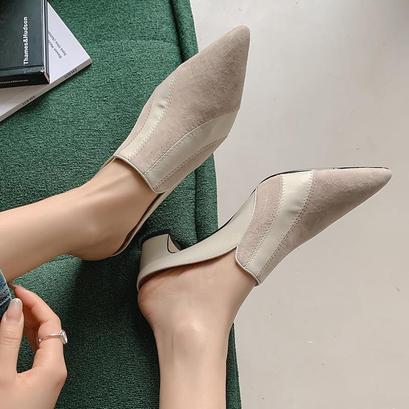 Soft leather color matching sandals flat thick heel high heels French 2025 new light mouth single shoes women's spring middle heel cm