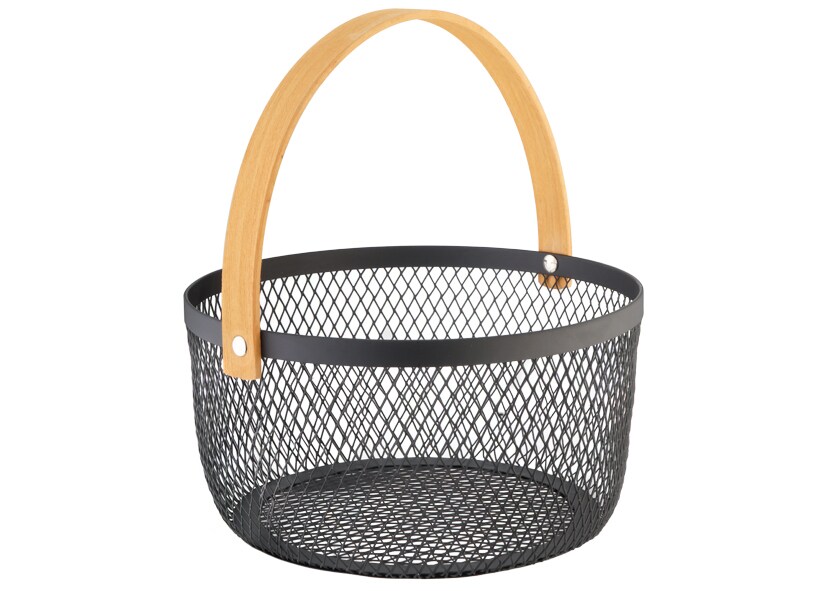 Eva Korb Draht rund schwarz + Holzgriff ø 21 x h 11 cm