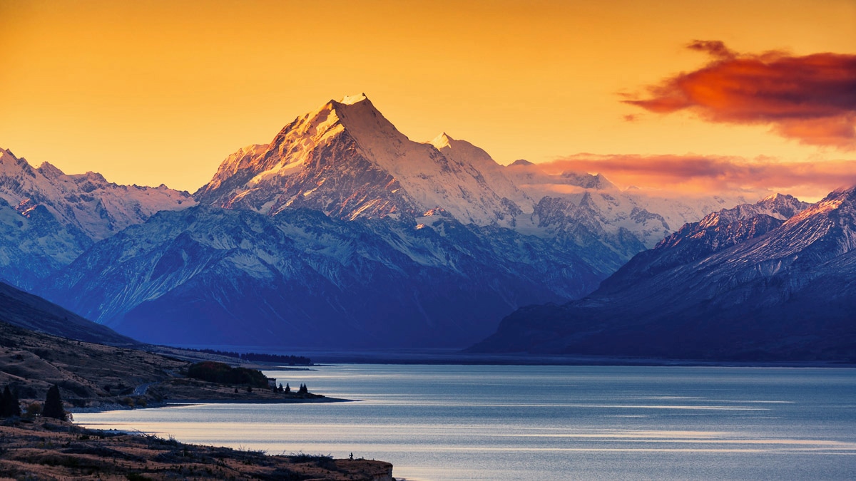 Fototapete PAPERMOON "See am Berg", bunt, B:4,50m L:2,80m, Vlies, Tapeten