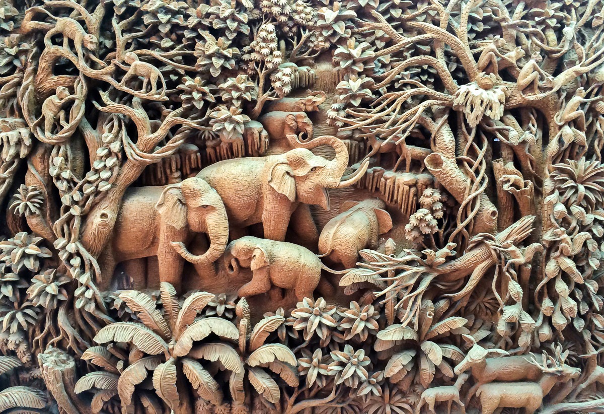 Fototapete PAPERMOON "Elefanten im Wald", bunt, B:5,00m L:2,80m, Vlies, Tapeten