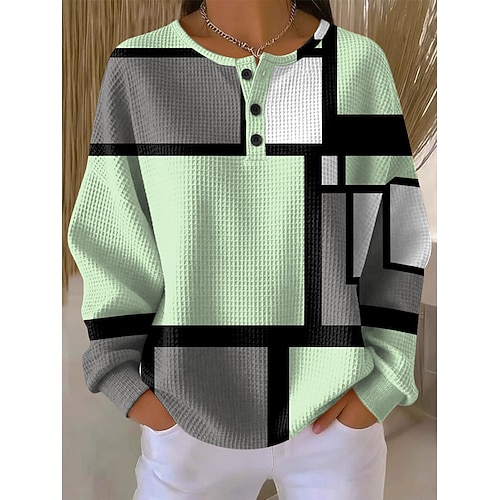 Per donna Felpe con cappuccio Grafico Geometrico Blocco di colori Moda Casual Stampa Manica Lunga Girocollo Top Regolari Casuale Streetwear Bottoni Blu Rosa Viola Verde Autunno Inverno