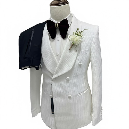 Uomo Affari Matrimonio Abiti da festa Bavero sciallato Bianco Affari Formale Tinta unita Vestibilità su misura 3 pezzi Doppiopetto a sei bottoni