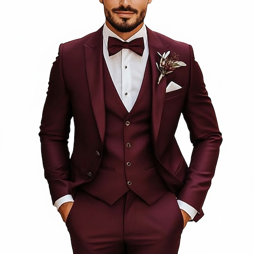 Abiti da uomo autunnali per matrimoni, revers a lancia, neri, bordeaux, classici, formali, tinta unita, vestibilità su misura, 3 pezzi, monopetto, due bottoni