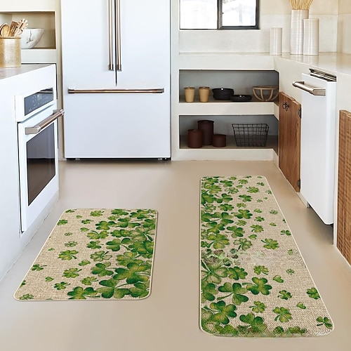 Tappeti da corridoio per il giorno di San Patrizio, tappetino decorativo per l'ingresso delle festività irlandesi, zerbino festivo con motivo celtico a trifoglio per porte e decorazioni per la casa