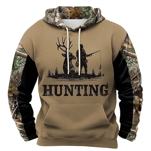 Per uomo Cervo Felpa con Cappuccio Felpa Moda Classico Girocollo All'aperto Caccia Nero Marrone Marrone 2 Marrone 3 Coulisse Autunno Inverno progettista S M L XL XXL XXXL