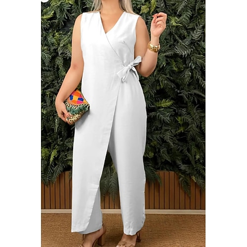 Per donna Normale Tuta Attivo Tinta unica Senza Maniche Scollo a V Allacciato Quotidiano Vacanza Vestibilità regolare Blu Nero Bianco Estate