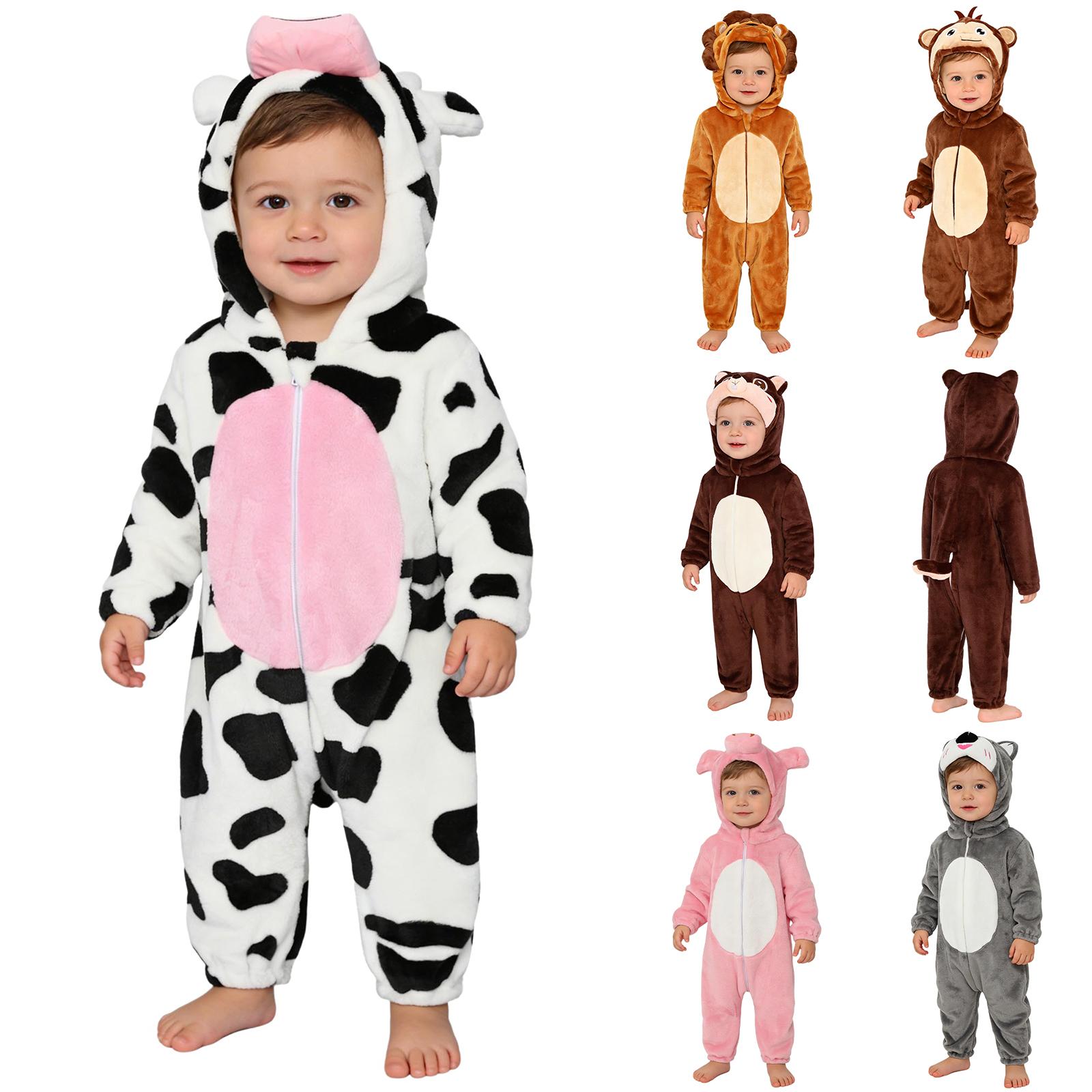 Kleinkind Tier Overall Langarm Elastische Bündchen Reißverschluss Niedliche Cartoon Kapuze 3D Schwanz Zuhause Lässige Kleidung cm