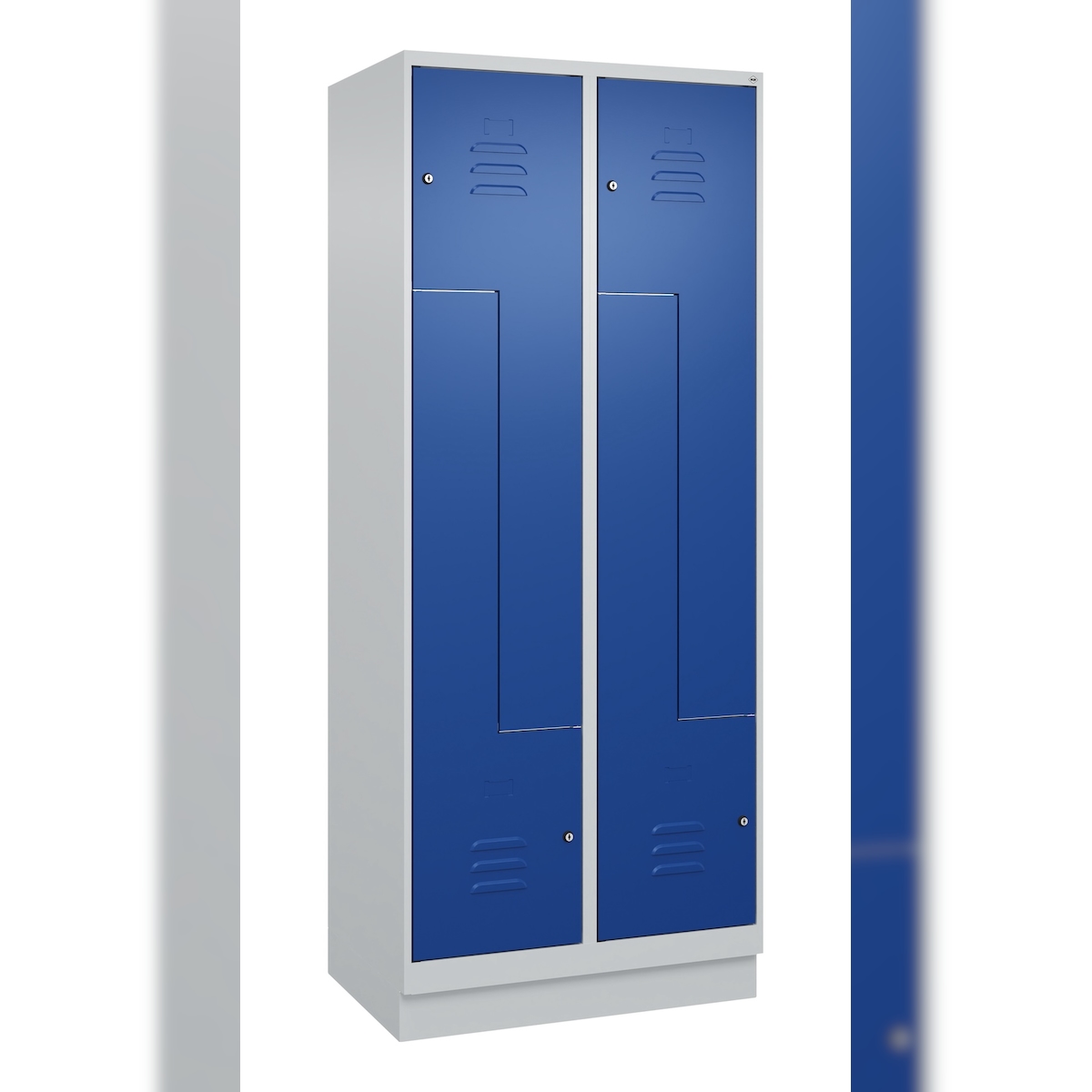 C+P Z-Spind Classic PLUS, Sockel, 4 Abteile, HxBxT 195x80x50cm, Zylinderschloss, Hellgrau/Enzianblau von PROREGAL