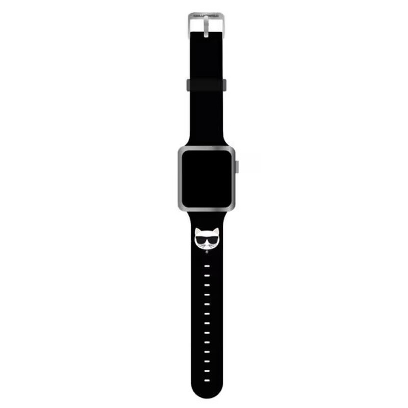 Karl Lagerfeld KLAWLSLCK Apple Watch-band 42/44/45mm zwart bandje van silicone Choupette-koppen