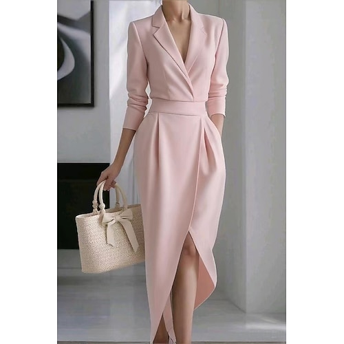 Per donna Abito Midi Abito in Raso Vestito da Festa Tubino Abito a Portafoglio Elegante Moderno Festa serale Feste Occasione speciale Vestibilità regolare Semplice Manica Lunga Scollo a V Bianco Rosa