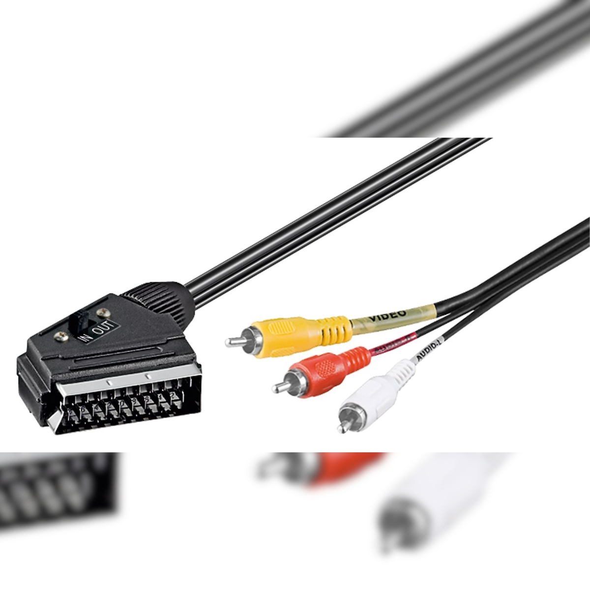 Goobay 50364 Adapterkabel, Scart zu Composite Audio Video, IN/OUT, 2 m, Schwarz - Scartstecker (21-Pin) > 3x Cinch-Stecker