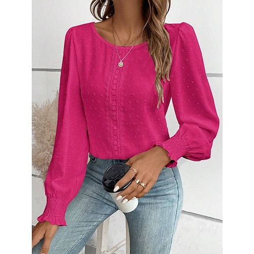 Per donna Camicia popover Camicia casual Blusa Pizzo Patchwork Tinta unica Vacanza Elegante Essenziale Manica Lunga Girocollo Top Regolari Quotidiano All'aperto Ferie Nero Bianco Rosso Arancione