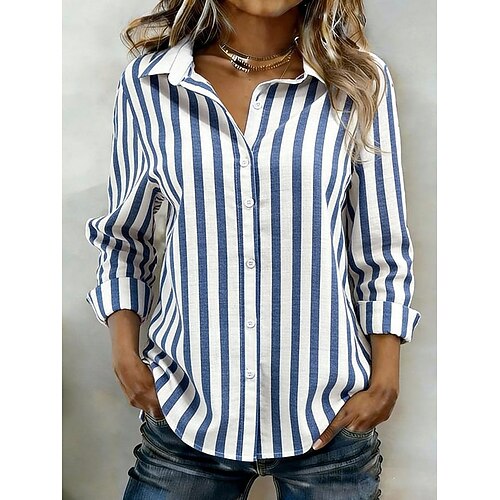 Per donna Camicia Bottoni Stampato Grafico A righe Elegante Vintage Tropicale Manica Lunga Colletto a Camicia Top lunghi Quotidiano Lavoro Blu Nero Giallo Verde Estate Primavera Autunno