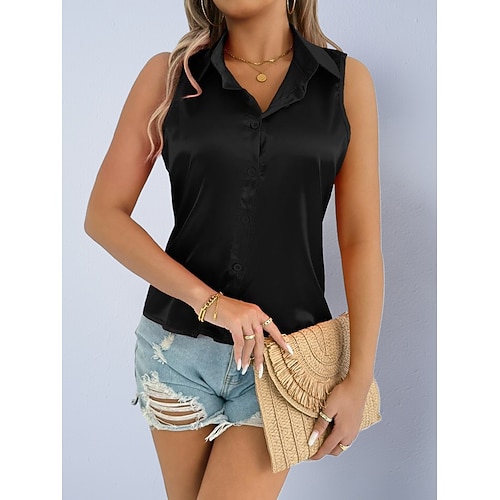 Per donna Camicia Camicia in raso Blusa Maglietta senza maniche Bottoni Semplice Elegante Classico Moderno Senza Maniche Colletto a Camicia Top Regolari Quotidiano Ferie Uscire Nero Bianco Viola