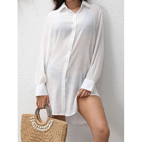 Per donna Mini Abito Abito Bianco Abito da Spiaggia Abito Camicia Copricostume Elegante Moda Classico Quotidiano All'aperto Spiaggia Vestibilità comoda Semplice Manica Lunga Colletto a Camicia Bianco
