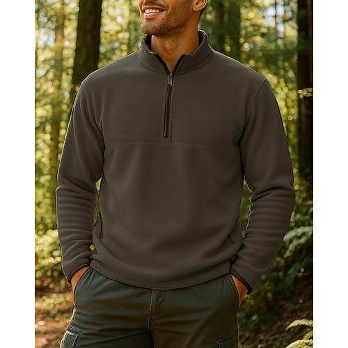 Per uomo Felpa in pile Felpa con zip corta Cappotto invernale Inverno All'aperto Calore Termico Top Bianco Giallo Verde militare Blu scuro