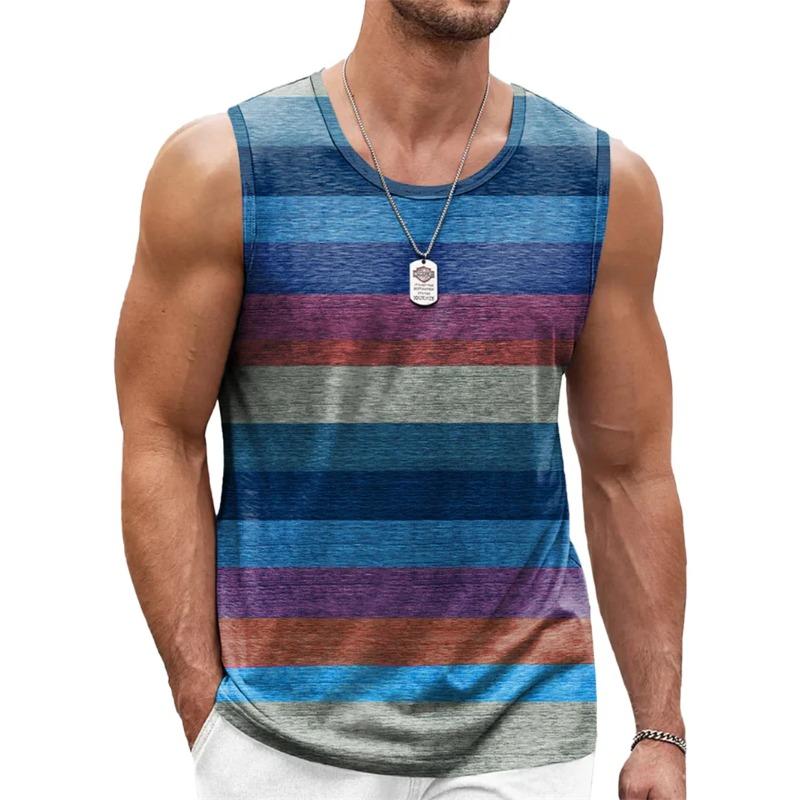 Summer Round Neck 3D Colorful Retro Striped Graphic Printed Top Fashionable Casual Sleeveless Vest Men's T-shirts cm