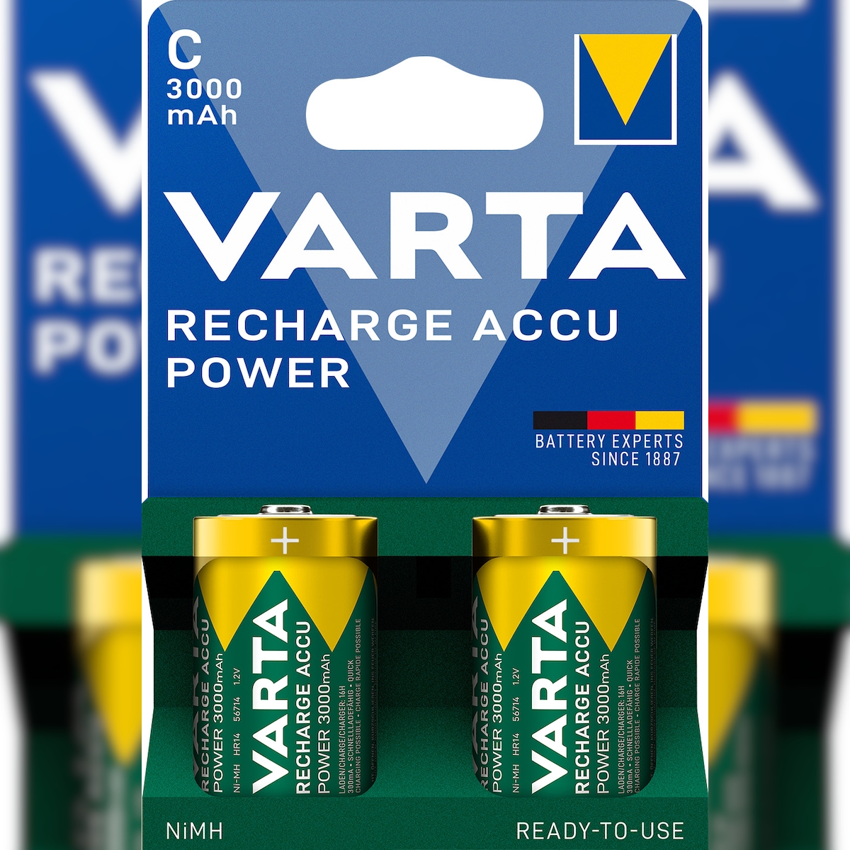 Varta Akku NiMH, Baby, C, HR14, 1.2V/3000mAh Accu Power, Pre-charged, Retail Blister (2-Pack)