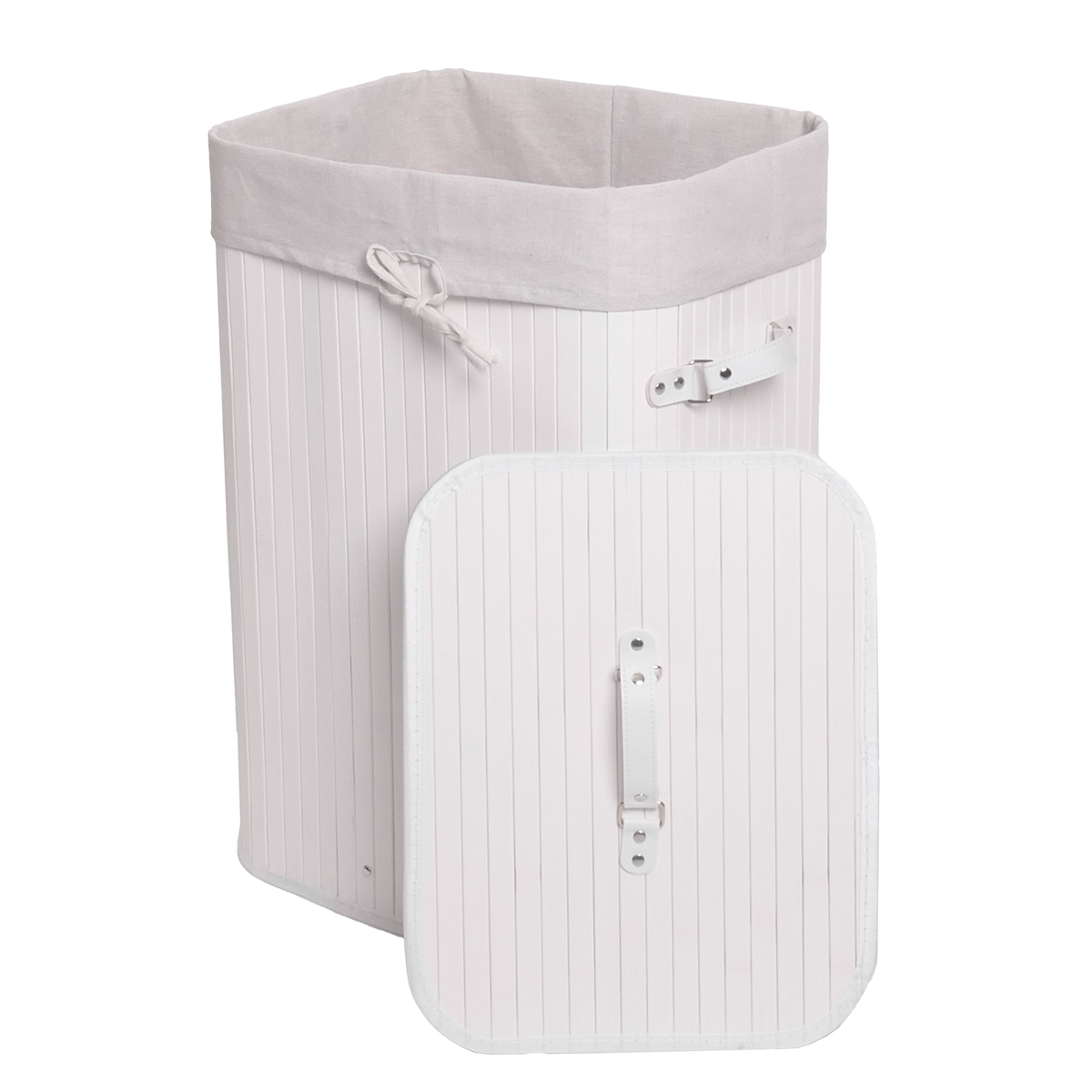 Mendler Wäschekorb HWC-C21, Laundry Wäschebox Wäschesammler Wäschebehälter Wäschetonne, Bambus 61x43x32cm 70l ~ weiß