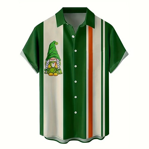 camicia casual da uomo a righe con quadrifoglio per il giorno di San Patrizio da indossare ogni giorno per uscire nel fine settimana estate couverture maniche corte verde scuro, arancione, verde s,