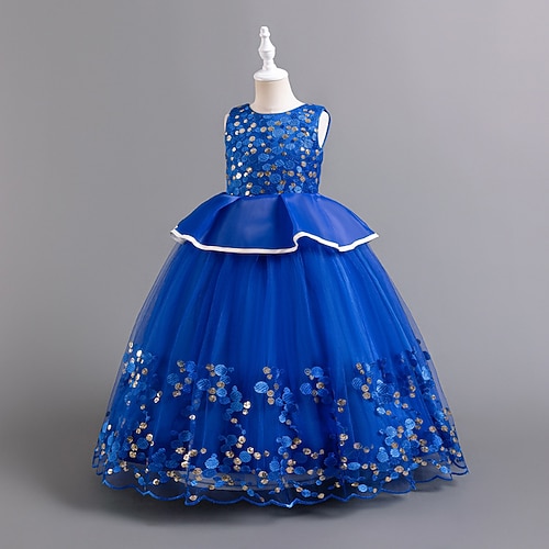 Abito da damigella d'onore bambina Ragazze Abito formale Abiti da sposa Balli di fine anno Feste Matrimonio Elegante Moda Adorabile Paillettes Patchwork Floreale Senza Maniche Girocollo Blu Rosso