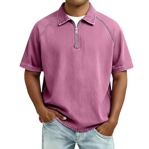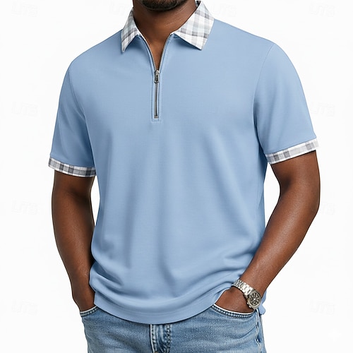 Per uomo Polo in Cotone Maglia da golf Abbigliamento quotidiano Data Zip a un quarto Manica Corta Moda Essenziale Semplice Cerniera Tasca Estate Primavera Primavera Estate Vestibilità regolare