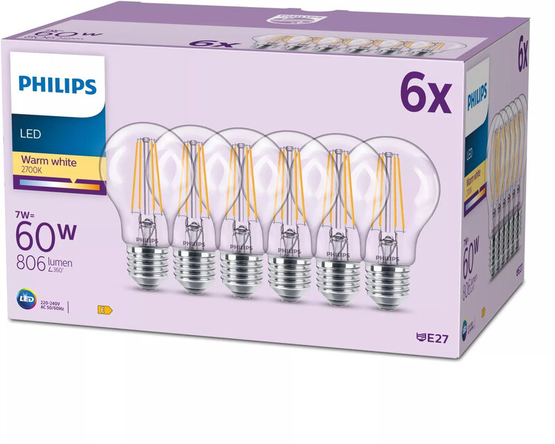 Philips LED Classic Lamp Mat - 60 W - E27 - Warmwit licht - 6 stuks