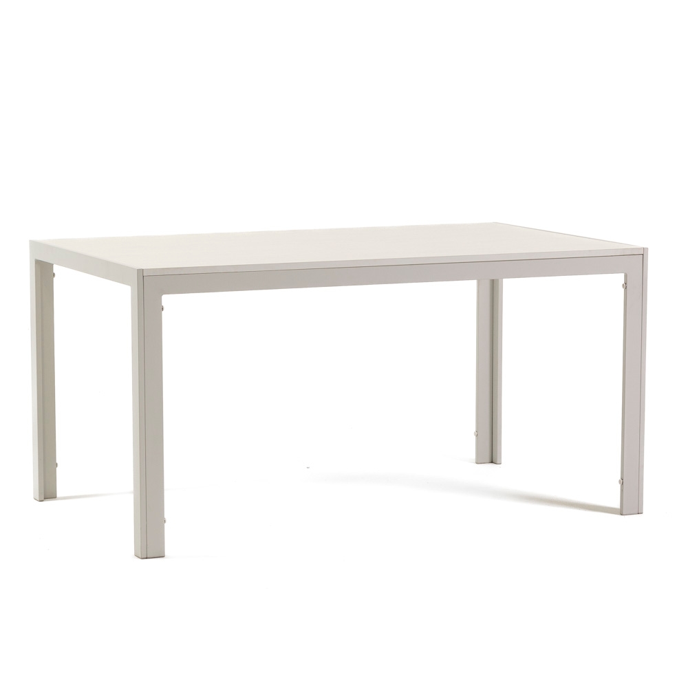 RATTATAN Rechteckiger Innentisch 150x90 cm mit Aluminiumgestell und Tischplatte in Holzoptik, für Küche und Esszimmer–NOAH-Weiß/Weiß-Holz