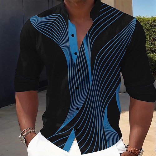 Per uomo Geometrico Sfumatura Linea Camicia Camicia con Bottoni Camicia con colletto alla coreana Manica Lunga Casual All'aperto Vacanza Quotidiano Primavera Autunno Collo alla coreana Colletto alla