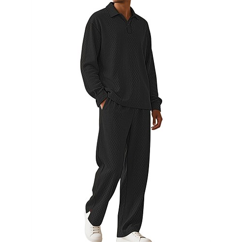 Per uomo Maglia da golf Polo da Golf Lavoro Casuale Bavero Manica Lunga Essenziale Moderno Semplice Jacquard 2 Pezzi Primavera Autunno Vestibilità regolare Nero Cachi Azzurro chiaro Grigio Maglia da