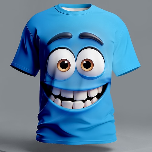 Maglietta grafica divertente con denti grandi per uomo, stampa 3D con grandi occhi ed espressione eccitata, design umoristico, casual, a maniche corte, abbigliamento da uomo, s m l xl xxl xxxl