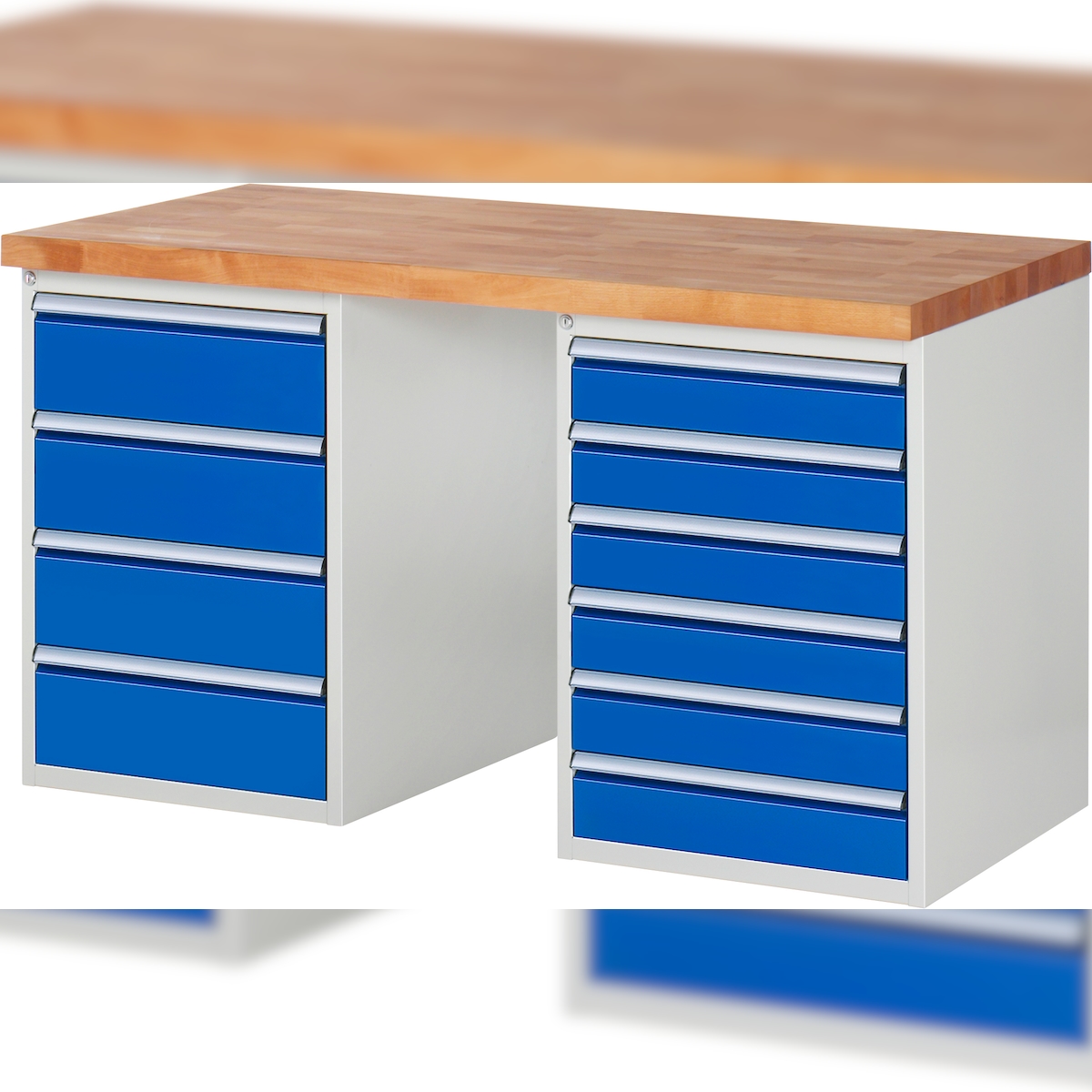 PROREGAL Werkbank Serie 7000 - Modell 7821 | HxBxT 89x150x70cm | 10x Schublade | Schubladenmaße 6x120 + 4x180mm | Lichtgrau | Arbeitstisch Werktisch