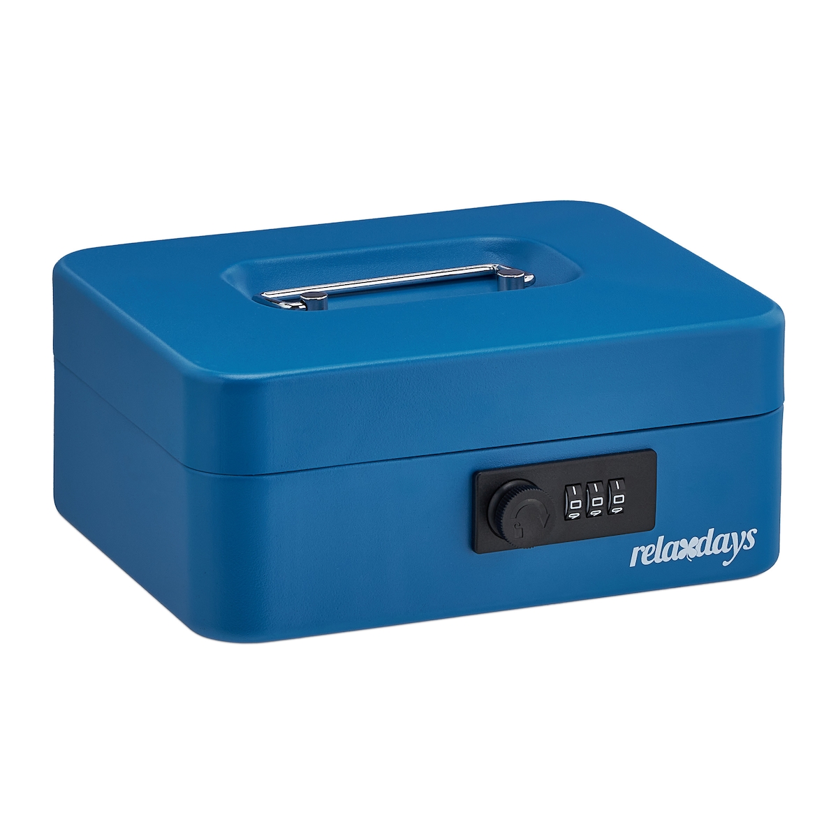 Relaxdays Geldkassette, 3-stellige Zahlenkombination, Stahl, Geldkasse für Münzen & Scheine, HBT: 8,5 x 20 x 17 cm, blau