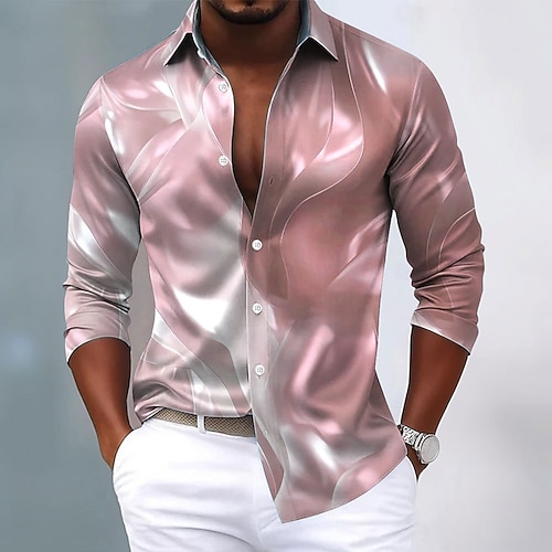 Per uomo Geometrico Colore sfumato Arte astratta Camicia Camicia in raso Camicia elegante Manica Lunga Moda Casual Vacanza Abbigliamento Quotidiano Estate Primavera Autunno Collo ripiegato Stampa 3D