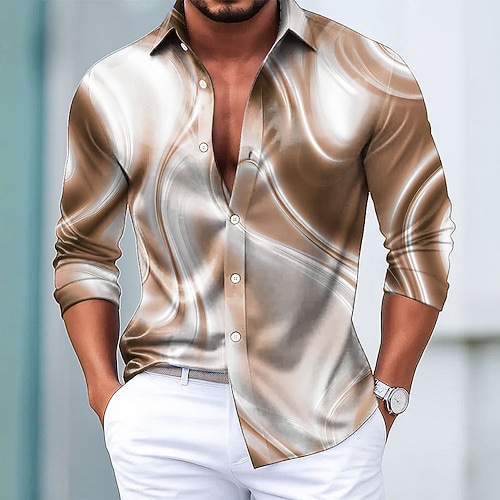 Per uomo Geometrico Marmo Arte liquida astratta Camicia Camicia con Bottoni Manica Lunga Moda Casual Vacanza Quotidiano Abbigliamento casual alla moda Primavera Autunno Collo ripiegato Stampa 3D